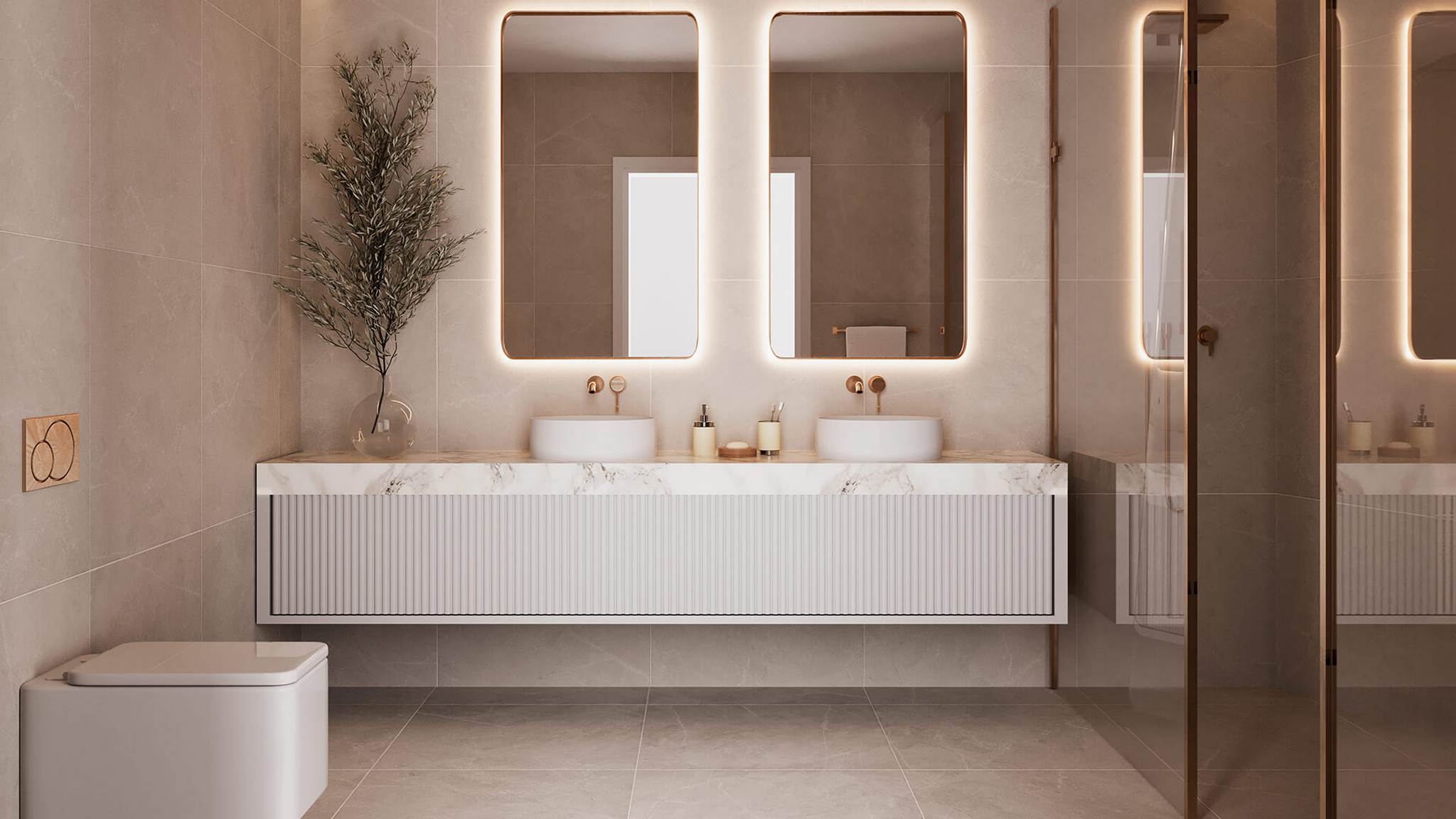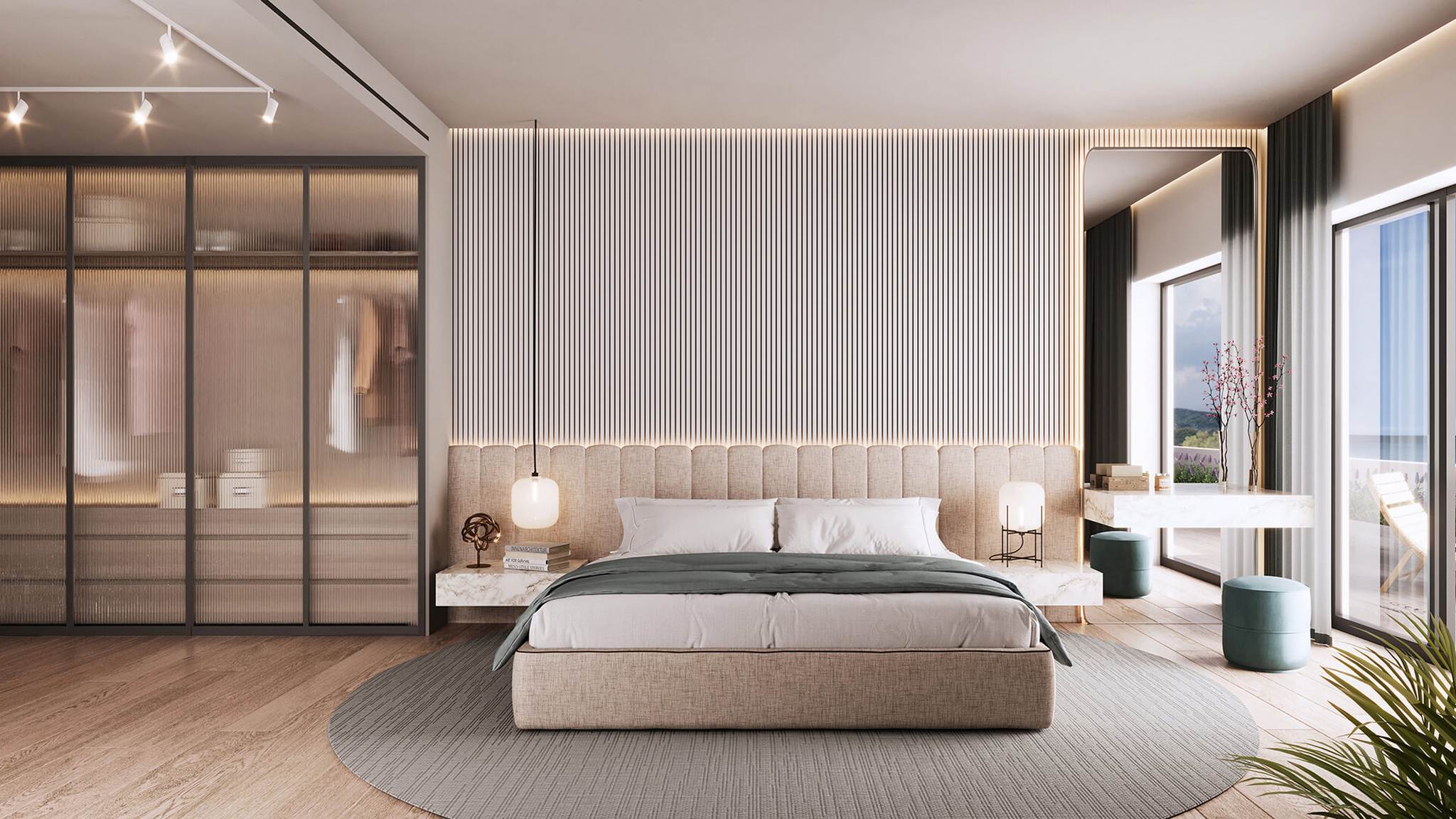 Наповнені світлом головні спальні з вікнами від підлоги до стелі створюють приватні куточки для відпочинку, плавно з'єднуючи внутрішні приміщення з відкритими терасами. У дизайні пріоритетами є простір, елегантність і комфорт, а кухні та ванні кімнати преміум-класу відображають найвищі стандарти майстерності.
